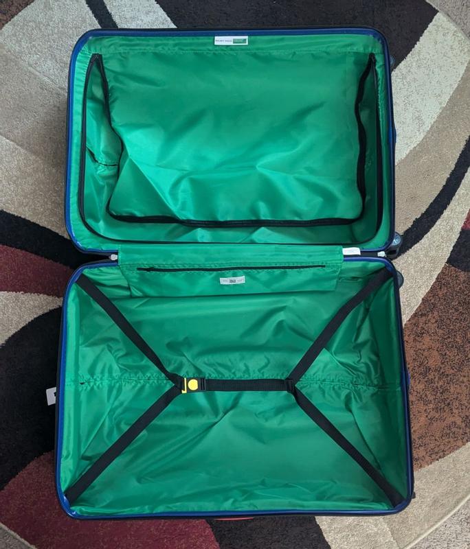 I was pleasantly surprised by this suitcase. It is very large and has plenty of room with little pockets inside. The spinners are so smooth and it rolls really well. Definitely will be using this for all of my traveling from now on.