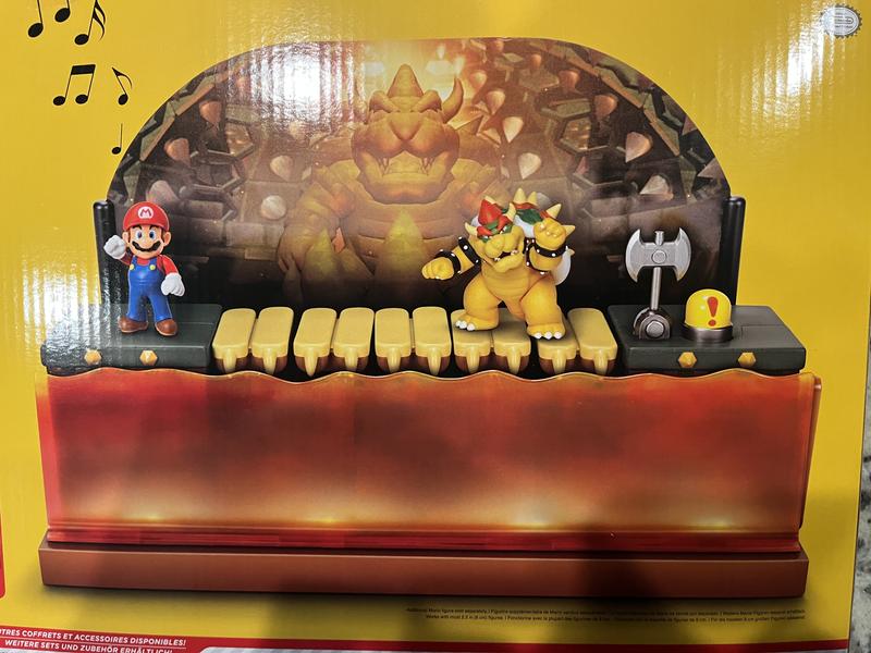 We unboxed the Nintendo bowser play set to find an awesome scene inside a lava filled fortress. Where bowser awaits you at the opposite side of a bridge while carefully crossing and attack bowser by hitting the yellow button behind causing the axe to fall and cut the bridge causing it to collapse. Amazing! We think it is just so great!