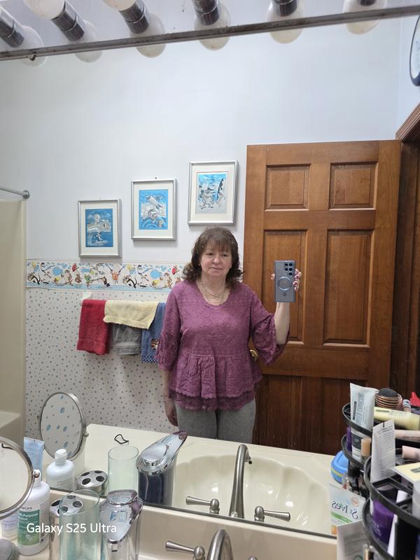 This top is so cute. I like that it’s not a basic top and has some different design elements. I ordered a petite small which is my typical size in a top. It’s slightly large but the fit is still good. I am a little shorter in the torso and it fits at mid-hip.