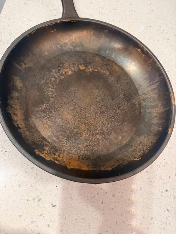 Horrible pan! After cleaning the pan I noticed a little rust color cleaned again and looked good. Time to cook.. pan was ok heated up nicely but things started to stick little frustrating but mushrooms and spinach came out good. After washing and drying pan off to bed.. woke up the next morning to a rusted mess!