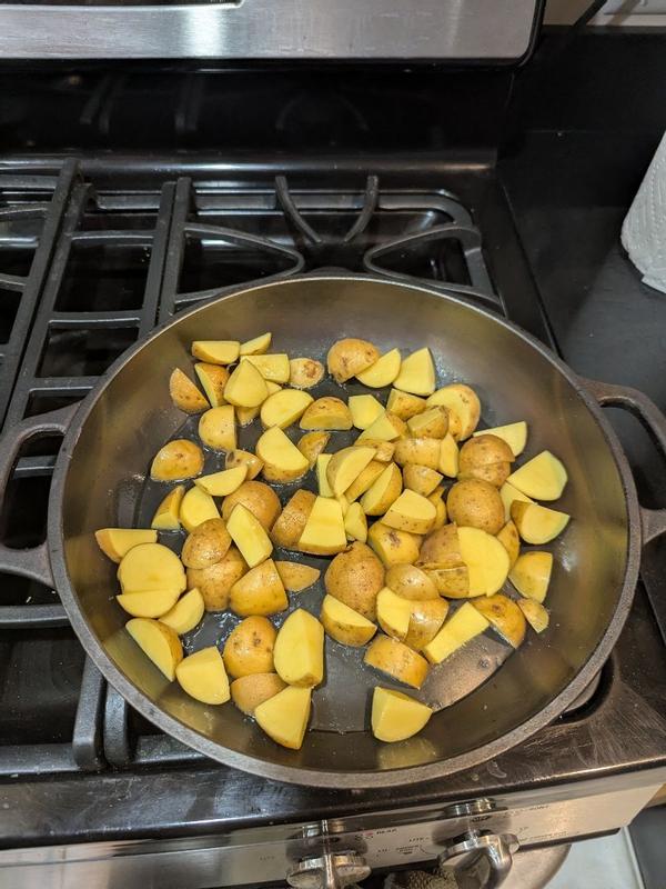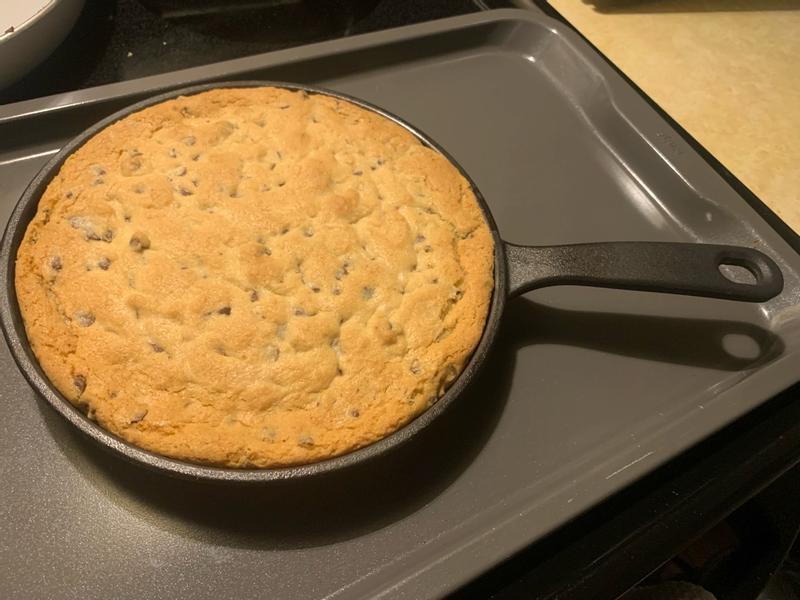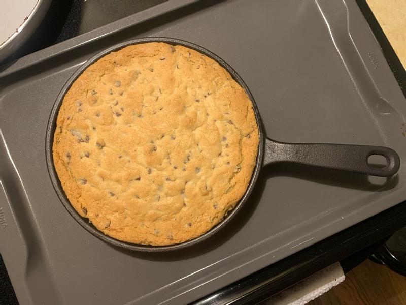 Great cast iron pan! I used it to make a cookie skillet. Heated up nice and evenly. Feel very heavy duty and ready to tackle any cooking you have in mind. Easy to clean and love that it is already pre seasoned. I can’t wait to use this pan for other recipes!