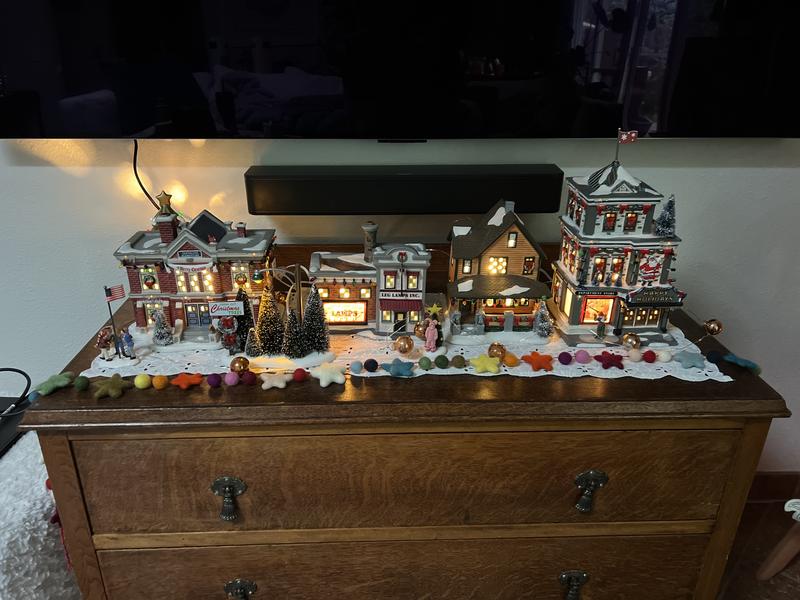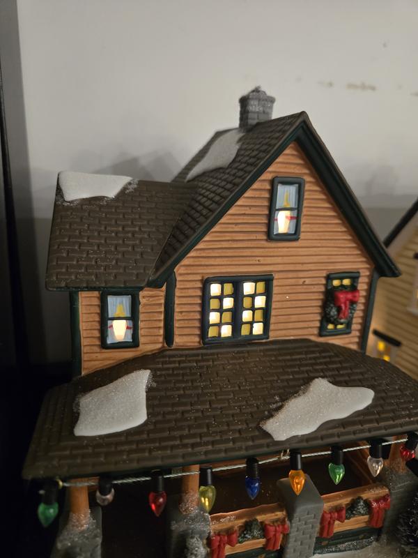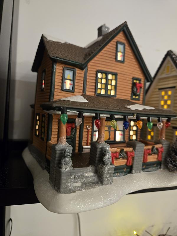 Disappointed that the item i received doesn't match the image on the website. The string of lights on the roof line is not there, the window curtains dont match and it doenst light up as much as the photo show. Its almost dull looking. Sad.