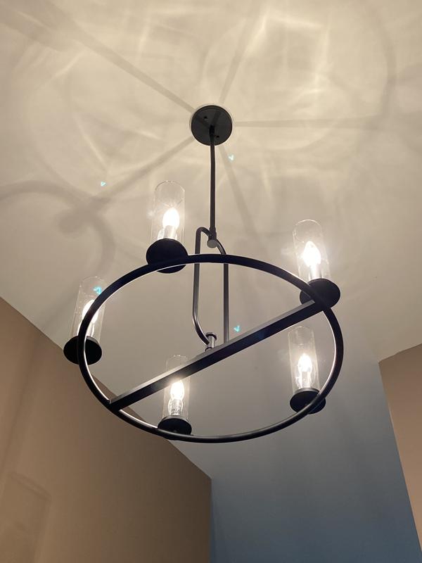 I put my designer fountain Hudson 5 light matte black transitional chandelier it really is nice i like how it came together with all my other decorations I like everything about the chandelier I wish I would have had it sooner