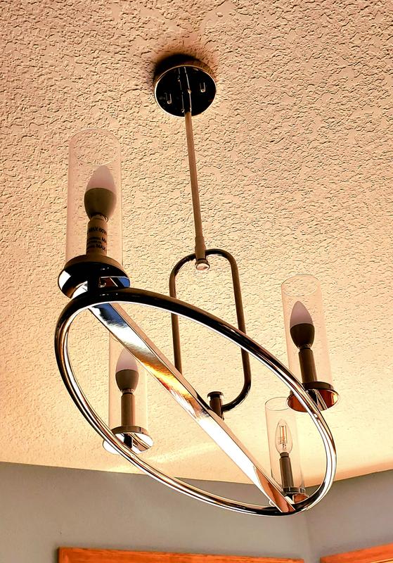 This light fixture is absolutely stunning in my kitchen! It's a bright shiny contrast against our wooden rafters. This replaced some older track lighting and it has made a world of difference. It is beautiful and the installation was an absolute breeze. It looks somehow both modern and timeless at the same time. I love it so much.