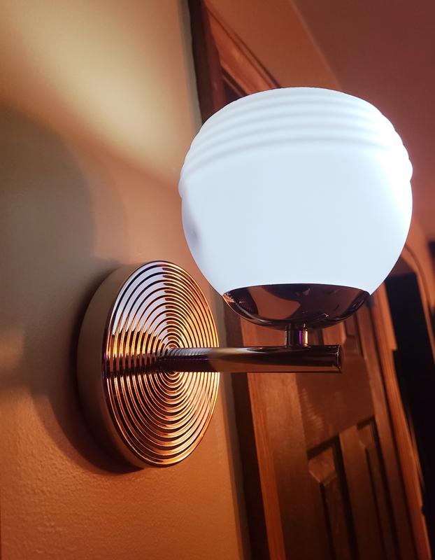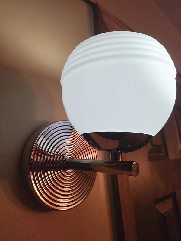 This is such a gorgeous and elegant looking light fixture. It goes well with a simple bathroom design or can make it look very upscale! It’s perfect, and not too big and bulky. I think I’m going to get another to match upstairs!