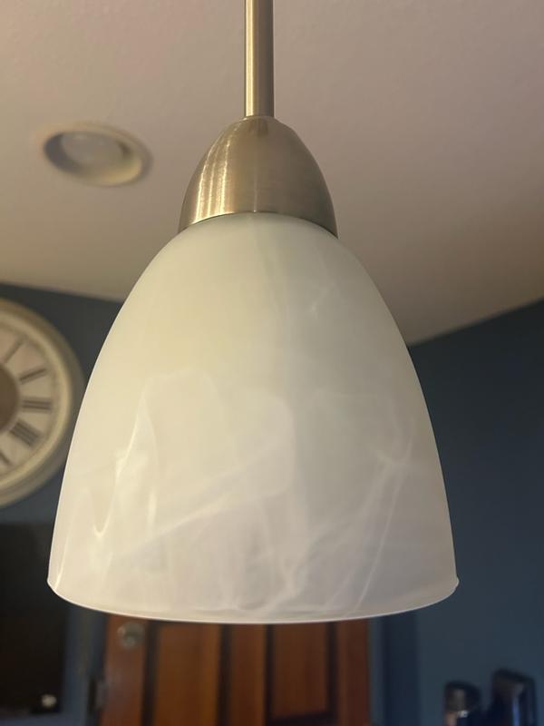 I received this product for free from Influenster and Designer fountain in exchange for my honest review. This mini pendant light is nice and small, perfect for over my kitchen table. The glass is frosty with white swirls, it’s very pretty. The instructions were terrible though! We kept having to take apart the bars and find the right thread so that there wasn’t a gap between the base and the bar. Instructions aren’t step by step photos just wording, making it a bit confusing.