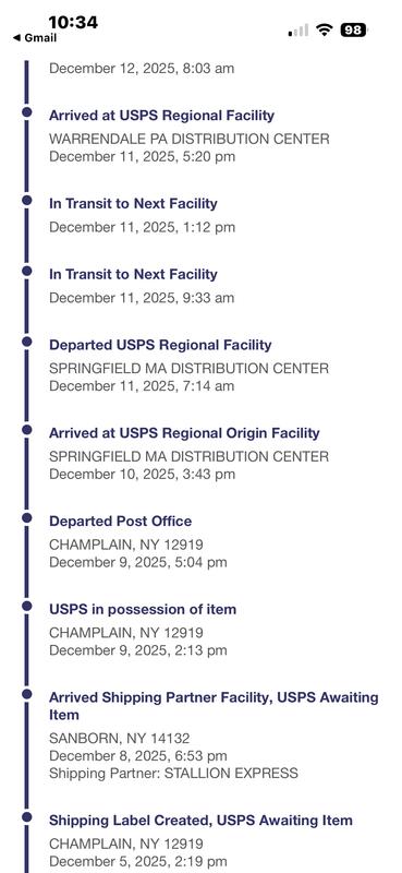 My order placed Dec. 4th was from Macy’s but shipped via the company Dux par Deux from which I bought pajamas. Had I known this I would NEVER have placed the order. My order went from New York earlier this week east to Massachusetts where it was stuck for several days. I live in southeast Michigan which is NOT east of New York, so I don’t know if and when I will receive it! Today it is in Pennsylvania, so finally headed in the right direction. IMO, it’s a bad move for Macy’s to trust another company to ship something they are selling.