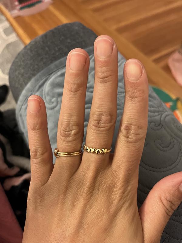 Beautiful, lightweight ring with a small band, not bulky at all. The underside of the hearts are hallow. It would make a cute wedding band. I got this for myself. Anyone would be delighted to receive this as a gift.