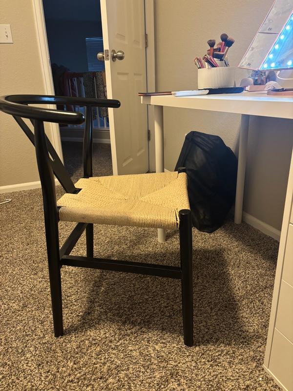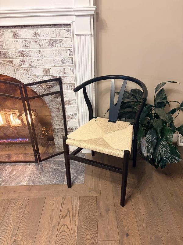 This chair is a great mix of style and comfort. The sleek black frame looks clean and modern, while the woven seat adds warmth and texture without feeling bulky. It’s sturdy, well-balanced, and surprisingly comfortable to sit in—even for longer stretches. The craftsmanship really shows in the details, especially the tight, even weave of the seat. It feels solid, not flimsy, and fits easily into both modern and classic spaces. Overall, it’s a well-made, attractive chair that looks just as good as it functions.