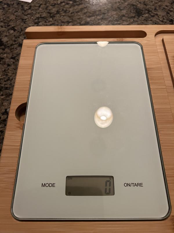 This is a great size wooden cutting board with a built in digital food scale that can easily be removed for easy cleanup. The scale has an indented spot so it doesn’t slide around while you are chopping.
