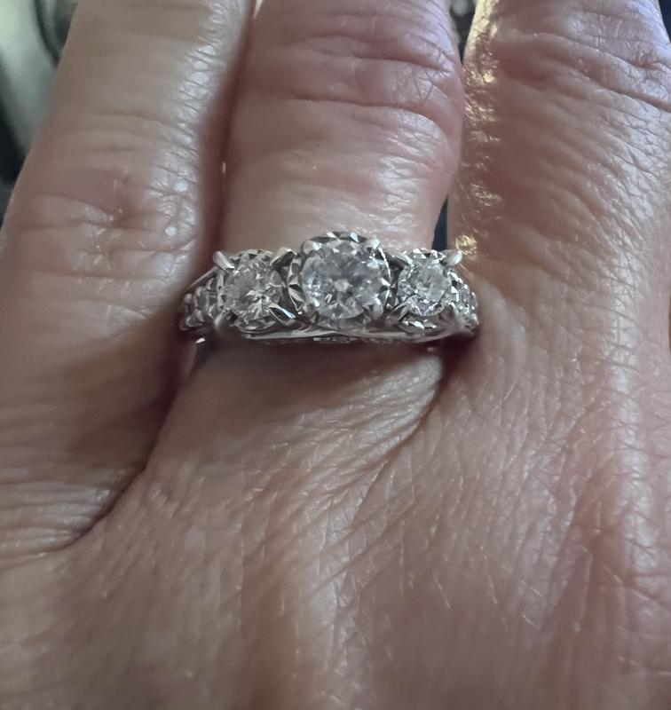This is a beautiful ring. I get lots of compliments on it. The diamonds are well set and of excellent quality.