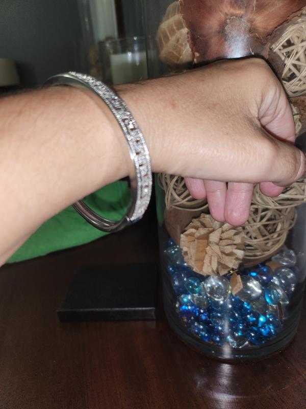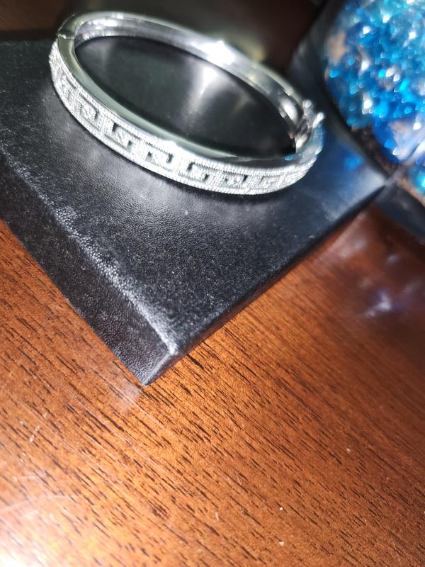 Diamond Accent Greek Key Bangle Bracelet in Silver Plated Brass