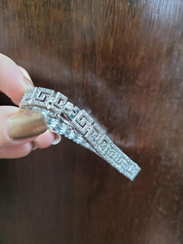 Diamond Accent Greek Key Bracelet in Silver Plate or Gold Plated Brass