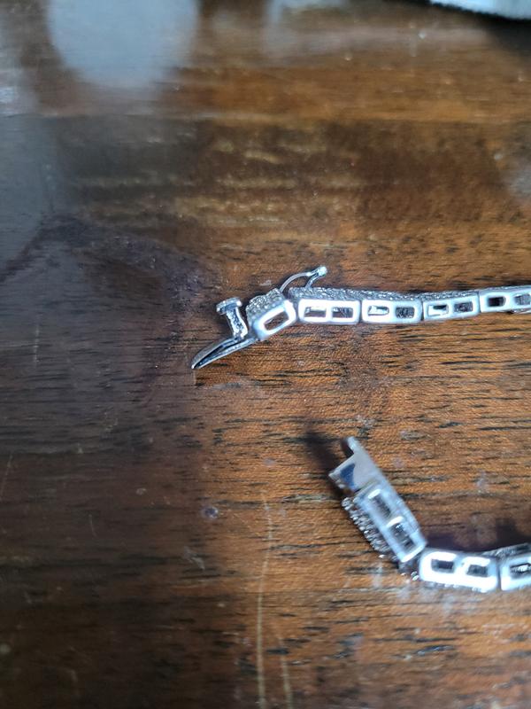 Christmas gift for my Sister; who loved the bracelet. Only problem is the clasp does not hold and bracelet falls off everytime. I’m so disappointed as is she. Bracelet is all the description says but will not stay on wrist! Can’t refer to anyone at this time. Will have to return. The flat end will not stay in.