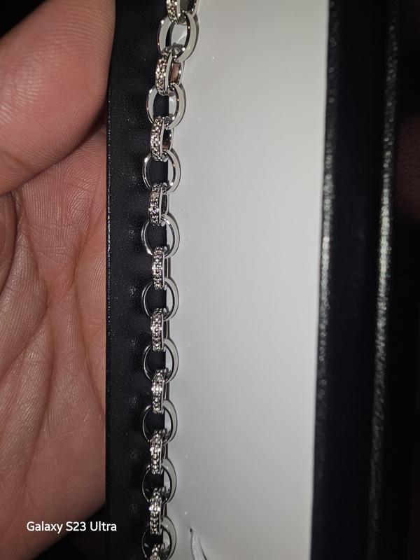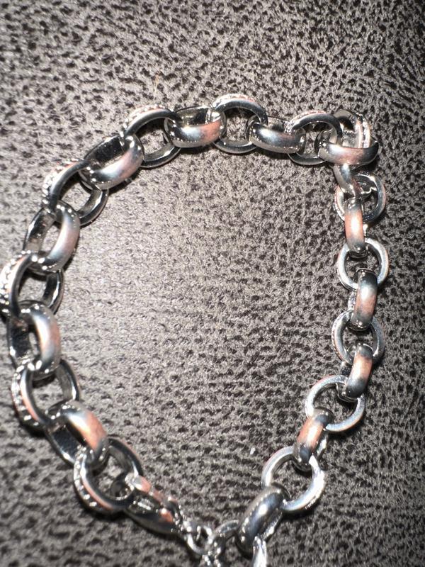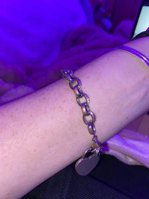 A few days after purchased I almost lost it, links opened up. A few weeks after wearing it it became oxidized and had to throw it away. But something else.