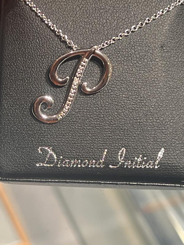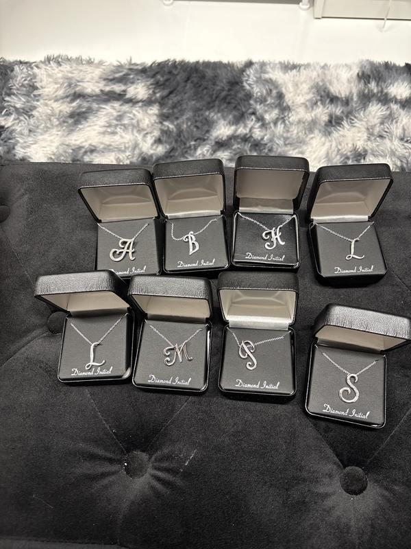 Diamond Accent Initial Pendant Necklace 18" in Silver Plate