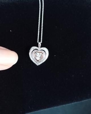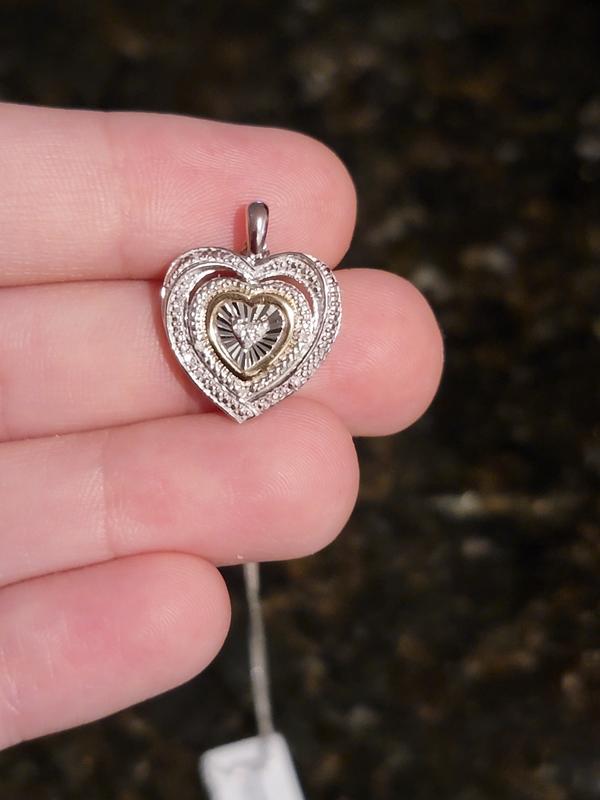 Diamond Accent Two-Tone Heart Pendant Necklace in Sterling Silver and 10k Gold