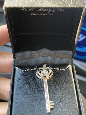 Diamond Accent Two-Tone Key Pendant Necklace in Sterling Silver & 10k Gold