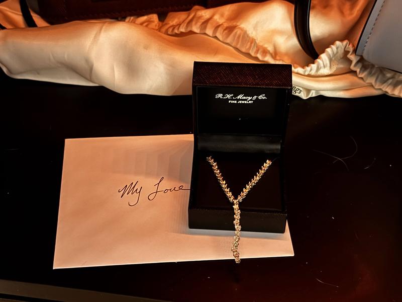 The length is too short and the chain is so thin. The diamonds are so tiny. When I adjust the length, I’m scared the chain will snap. When it arrived the chain was tangled. The longer part of diamonds flips inward and I have to adjust it often. It sits odd. I wonder if this is why it was on sale?