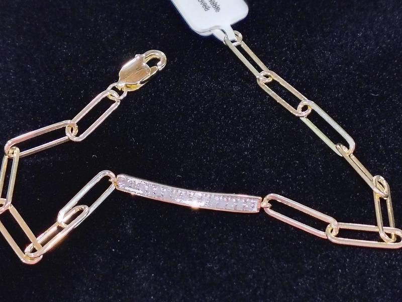 Macy'sDiamond Bar Paperclip Link Bracelet (1/6 ct. t.w.) in 14k Gold-Plated Sterling Silver