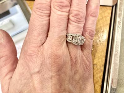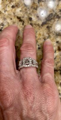 Stunning ring that gets comments all the time. Beautiful cut on diamonds so it’s very sparkly