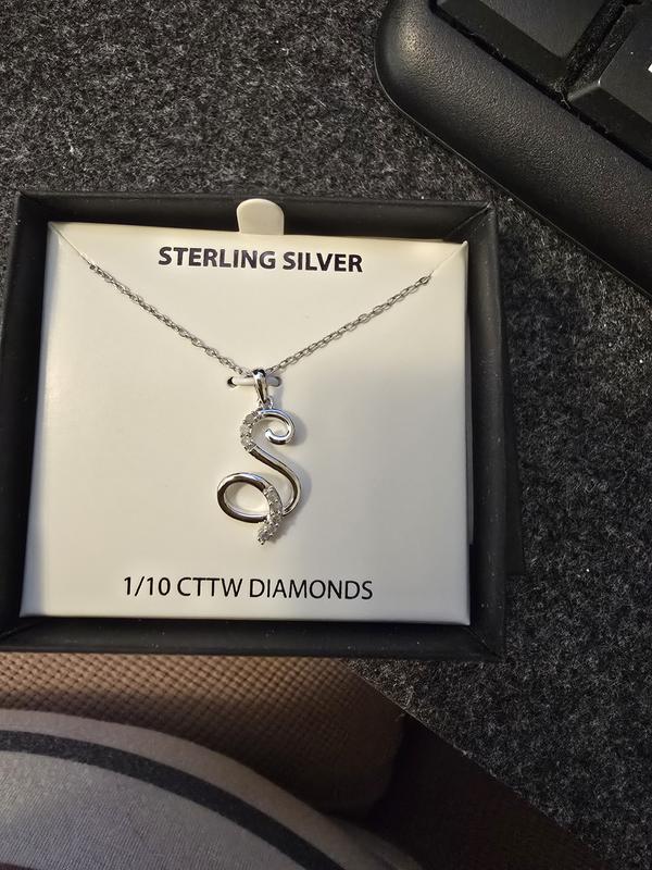 Diamond Fancy Initial 18" Pendant Necklace (1/10 ct. t.w.) in Sterling Silver