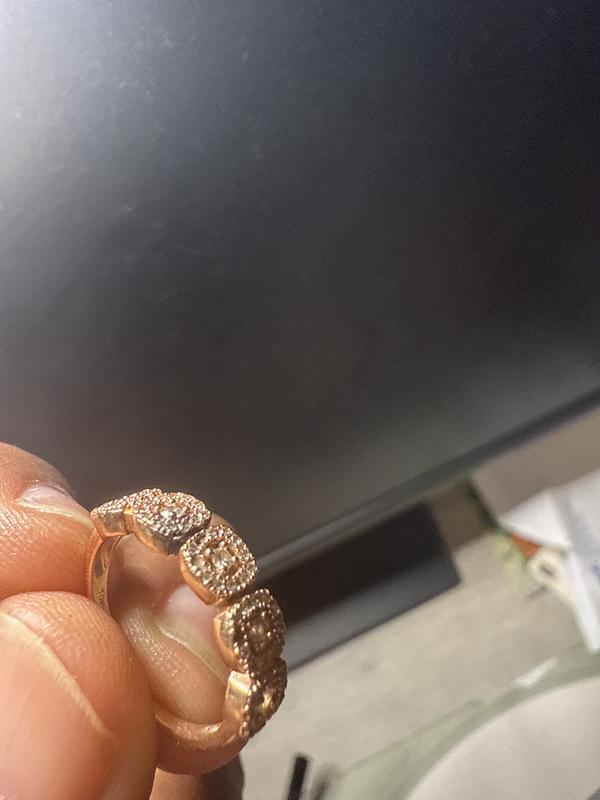 Randomly the ring turned black and the rose gold started to fade. It’s a nice ring but cheap quality