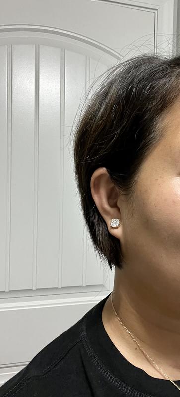 I have been searching for the "perfect" diamond stud earrings for many years, but I did not want to break the bank to do so. I happened to be in a Macy's when this pair in the red box caught my eye--the sparkle was tremendous! Yes, I have seen these earrings many times in the past before, but this one pair stood out, so I had to purchase them. Oh my--they are a great size in the ear--big, bold, just perfect, with a nice amount of gold. They are also very comfortable. I will say the butterfly back is a bit too small to support them well, so I changed to a larger back. The earrings were on a good sale, which was also nice, but you have to keep checking the price. I purchased the white gold, which is very bright. I highly recommend these earrings, but shop around until you find the perfect pair like I did! Thank you, Macy's!