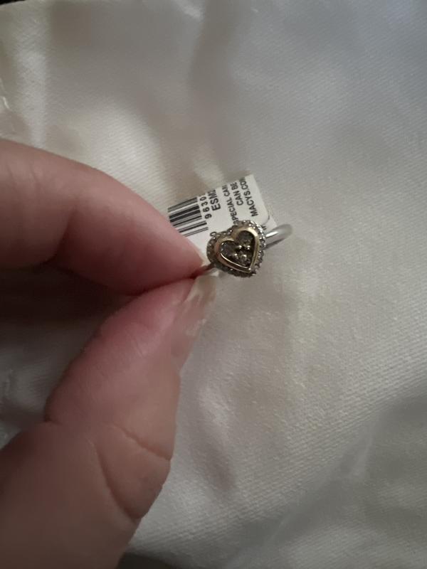 Ring is beautiful but diamonds inside heart shape area looks dirty like there is nothing in there. Very disappointed.