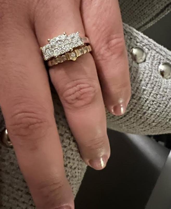 My fiancee gave this to me for our engagement and I couldn't be happier. He knows I hate traditional engagement rings and bought this for me. I love how it sparkles and shines . I always get compliments on it .