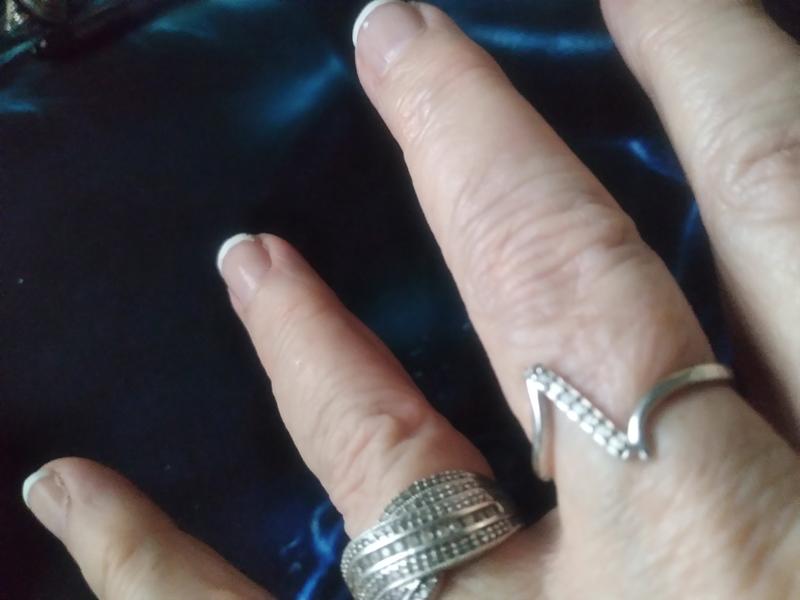 Love this Ring! I bought it to wear on my middle finger next to my Wedding Ring. It is so cute and comfortable, I get lots of compliments on it.