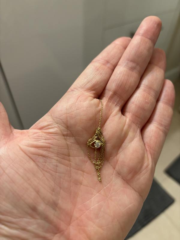 While the necklace is quite pretty, I am horrified at how such an expensive necklace was packaged. The necklace was dropped in a large plastic baggy and came out incredibly knotted. Took 20 minutes and bending the o-ring of the clasp to untangle the necklace.