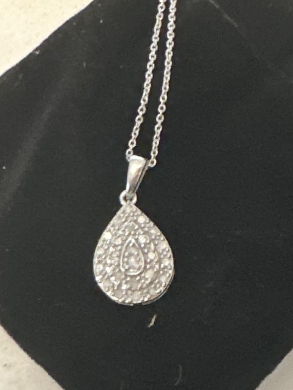 The teardrop cluster pendant necklace w/chain was bawled up and tossed into a very teeny tiny cloth BLACK color POUCH -- and shipped to me loose in large box along with the BLACK color sweater. Fell onto wood floor as I grabbed sweater out of box (glad I was barefoot ¬ near a floor register vent). First thought was just some random small bundle of trash. FOR REAL MACY's-- NOT so much this "BONUS jewelry item" -- BUT is the way you packed then shipped item out to me-- it was a big let down that I did not prepare myself would ever come from MACY's. bc I truly did think would be shipped to me in plain ole everyday MACY"s (cotton pad inside) cardboard box -for gift wrapping -- will get those complimentary small gift box at store counter no matter jewelry item or price point. but We still love you MACY's and Macy's dot com-- and always will.