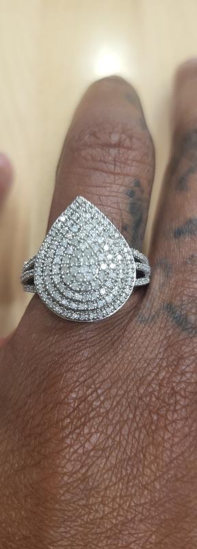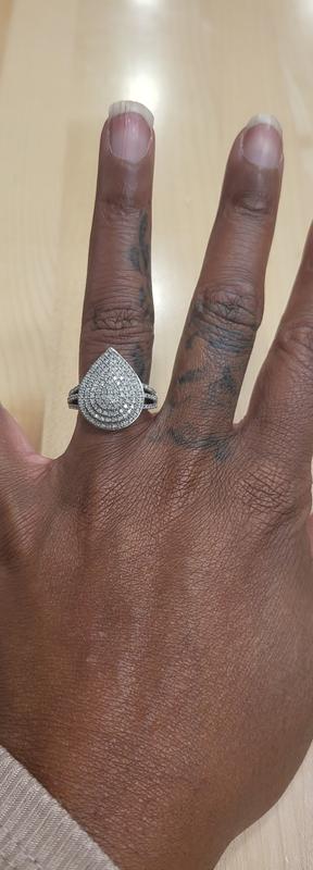 Dear Valued Customer, Thank you for your interest in the Diamond Teardrop Cluster Statement Ring 1/2 ct. t.w. in Sterling Silver. We understand you are not satisfied with your selection. If you are still within the time frame of the return, we will work with you for the return of this item, or you can visit your local Macy's to exchange for a new piece or something that better suits your needs. We want you to be satisfied with your purchase. Sincerely, Macy’s Customer Service