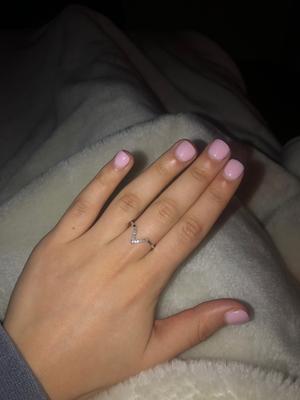 This Diamond V Ring in 18k gold (over sterling silver) is dainty and feminine. The v-shape of the diamonds is unique and has garnered a few queries from friends. The price is excellent, and this will make an excellent gift for teens as well as women.
