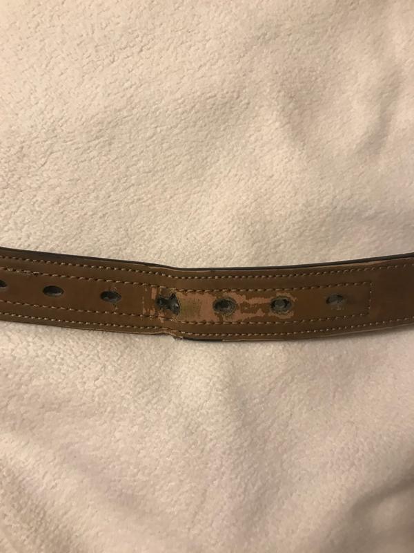 Belt buckle broke wearing it. Belt was holding strength but starting to peel apart.