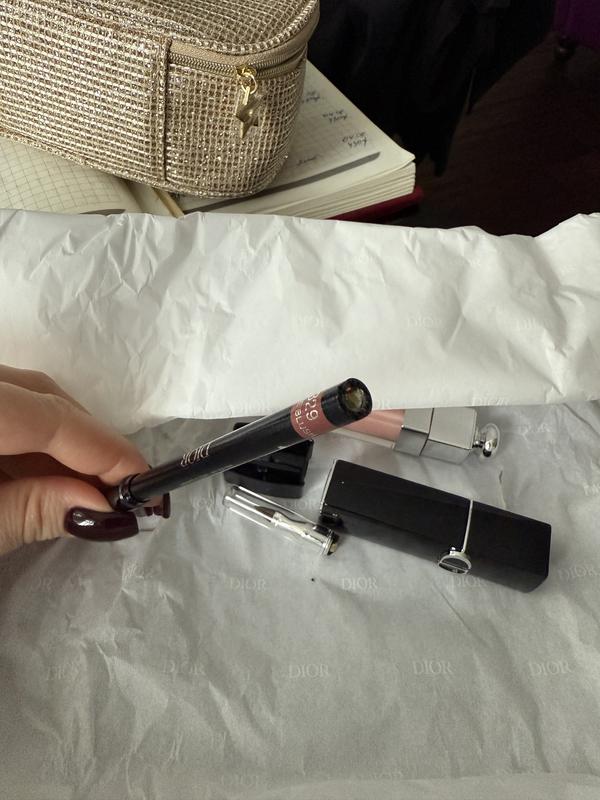 Cute little bag… beautiful color lipstick 💄 and lip pencil.