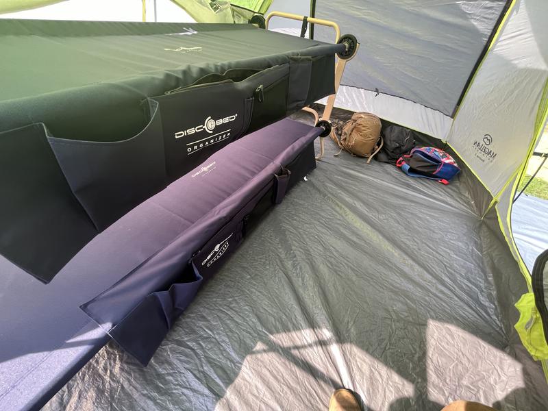 We were extremely impressed with the Disc-O-Bed Large with organizers. They are heavy, but super sturdy. Very easy to set up. Can be used as two separate beds or as bunk beds. Individual carry cases and each bed comes with a Velcro organizer. Perfect for extra guests, camping, anywhere you need an extra bed or two. Well worth the price!
