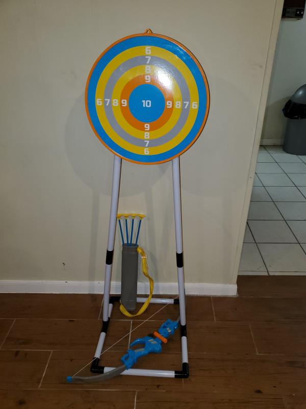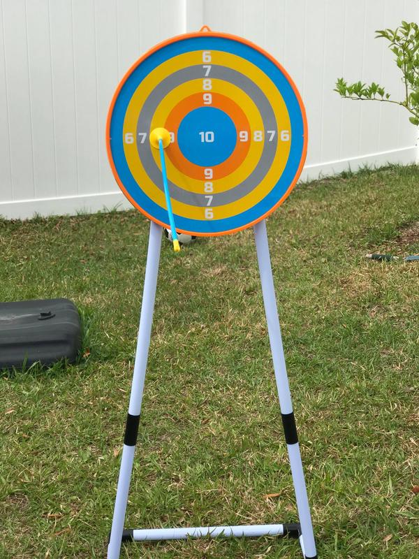 I received the outdoor archery set in exchange for my honest review. This set was very fun for my kindergartener. She was strong enough to use the bow and arrow set without help. I like that it was easy to set up and safe with its suction cup arrows. The only warning I would give is to be careful of bending the arrows so they don't break.