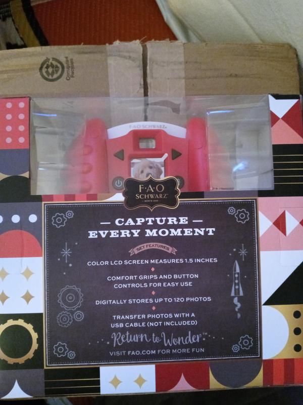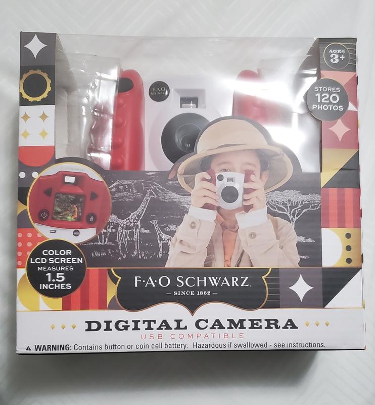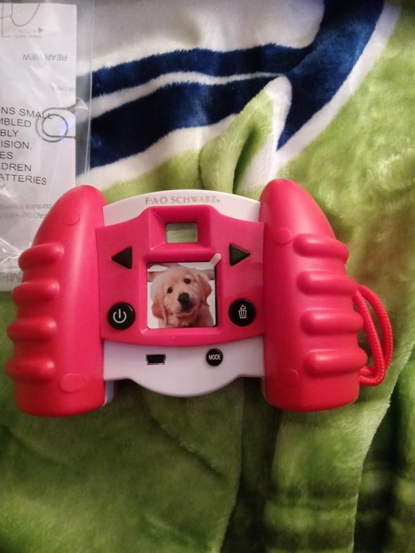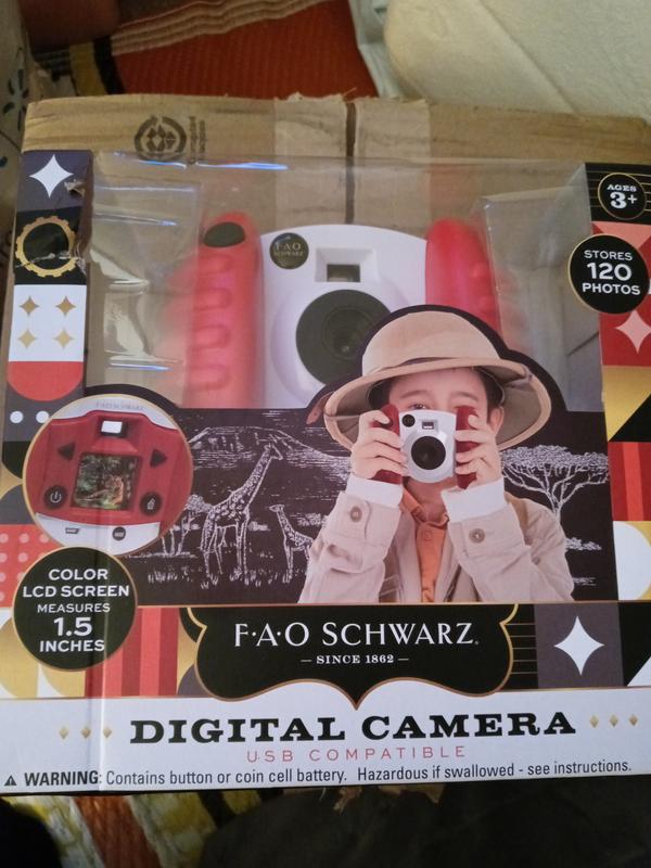 I got the FAO Schwarz camera kids digital with video a few weeks ago. It’s a great first camera for kids. The camera has ridges on the side to make it easier for little ones to grip and hold onto it. The camera holds 120 photos, and it’s very easy for kids to delete the ones they do not want. The buttons are a little big, and the power and delete buttons have pictures. That makes it easy for little kids to know which ones they need to push, and the size makes it easy for them to push. The camera comes with a USB port so it’s easy to transfer any pictures you want to save. My little girl is 6 years old, and she loves taking pictures and videos. I love looking at her pictures. This is a good camera for her.