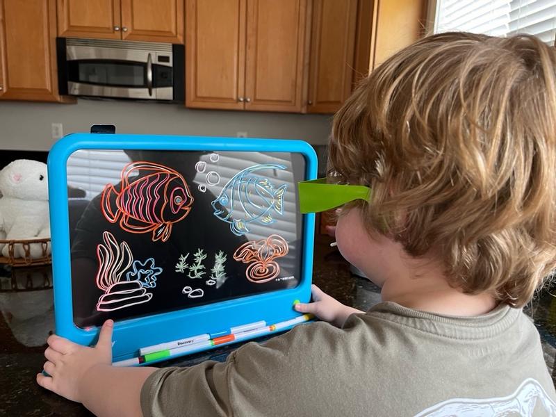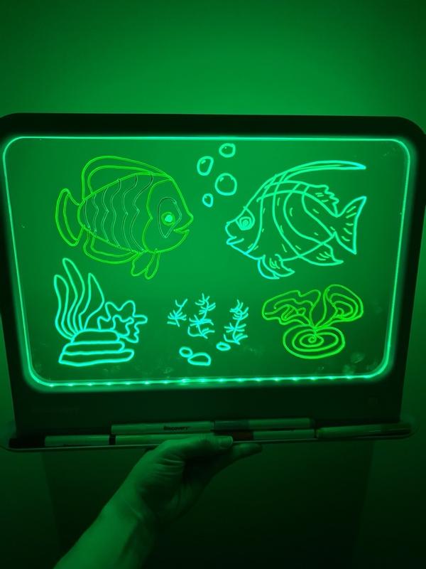 We now bring this drawing pad everywhere we go. My little one loves to create the designs and watch them glow. There’s lots of fun features and great value for a constant distraction/entertainment for the kiddos
