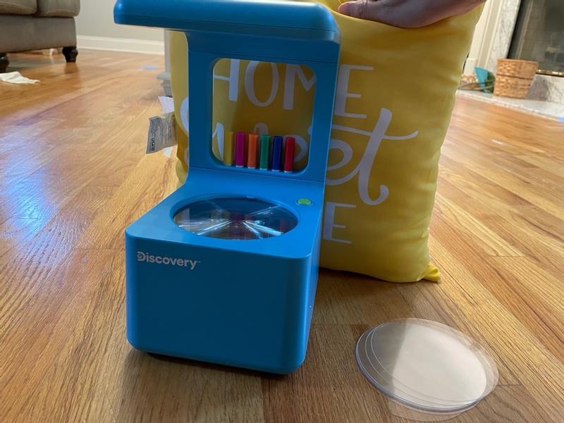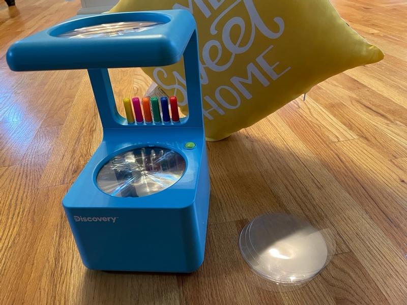 How cool is this! The fact that you can create your own design and then projects on to the wall which is so neat! It’s definitely a little on the “babyish” side as my girl is 7 and was not entertained for long at all. This however is recommended for ages 4 and up so that makes sense! Highly recommend this product especially for the price! It’s also nice and light weight so it’s extremely easy for a young little tot to carry around!
