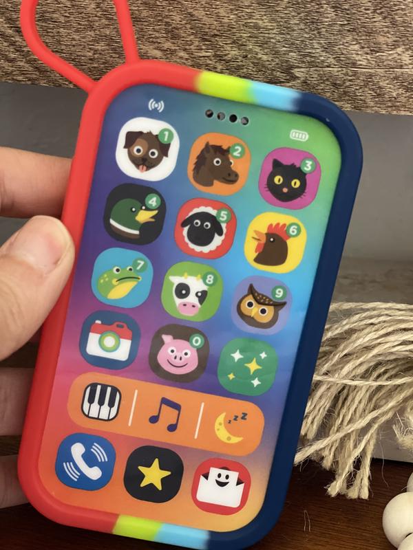 one of the best toys that I have been able to give my grandson, now that all adults and adolescents always carry a cell phone in their hands, small children also want to have theirs and what better way to do it by giving them something that entertains them and also teaches them with music to distinguish colors, sounds and animals, and with the cover of pops it is a very soft and fun way to cover from blows