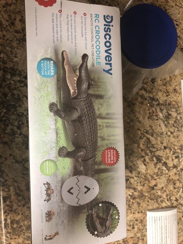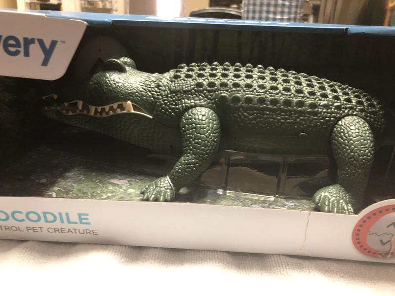 We have had alot of fun playing with this remote control crocodile from Discovery Kids. Initially, we had an extremely difficult time getting the screw to loosen on the controller. I had to get my oldest son to bring additional tools to get it open as nothing I tried worked. The rc crocodile can walk slowly forward and backward, it's eyes and mouth light up, and his mouth opens then growls. My son has been chasing the cats with it. The only reason I'm not giving this 5 stars is because of the difficulty opening the controller. This is a perfect gift for little crocodile fans!