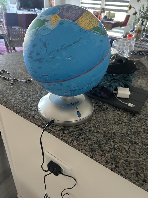 The Discovery Kids 2-in-1 Globe Light features a fully detailed world globe with geographic and political boundaries and features. The globe sits at a natural tilt and rotates on its base just like a full globe you would find in a library or study. This classic Earth globe transforms into an illuminated map of dazzling city lights as seen from space Watch as populated land masses glow brightly with color-changing LED light.