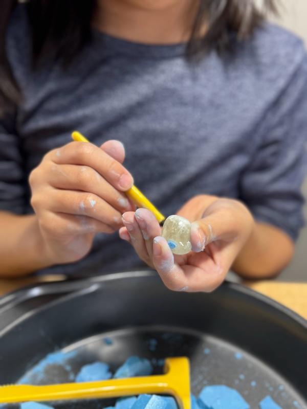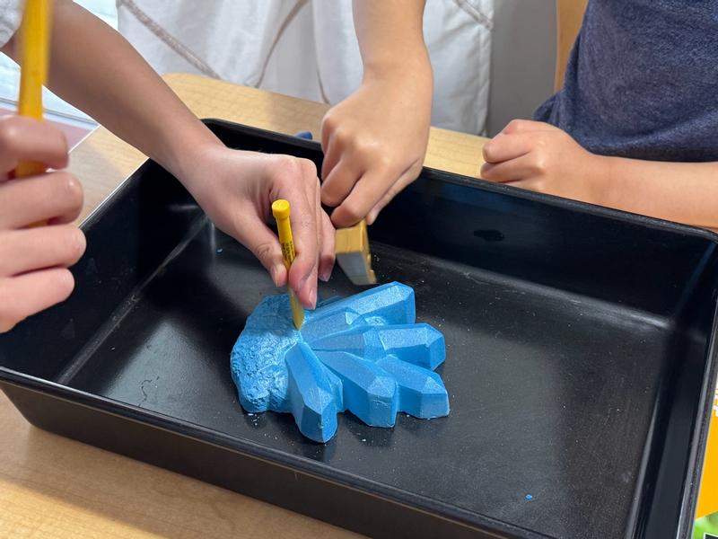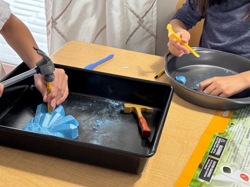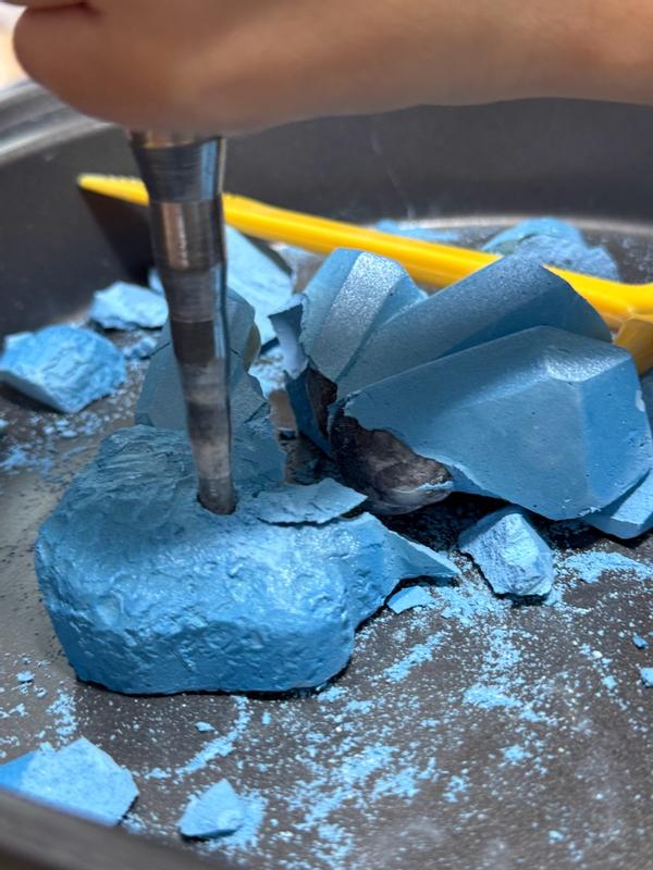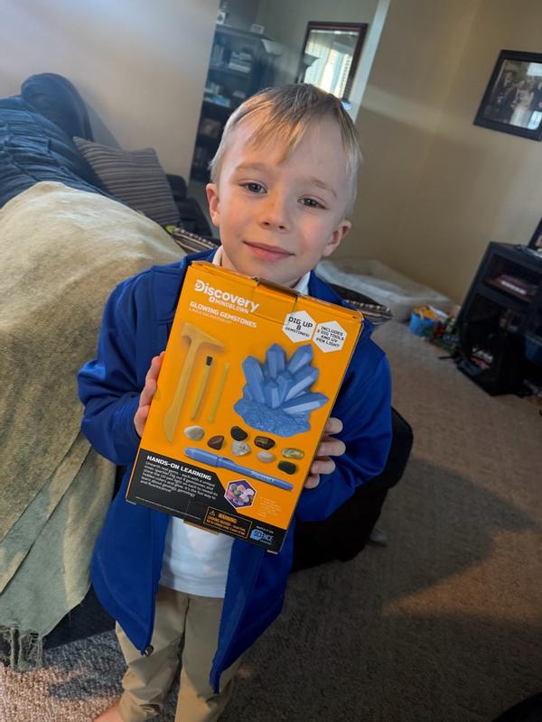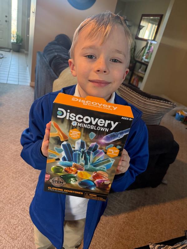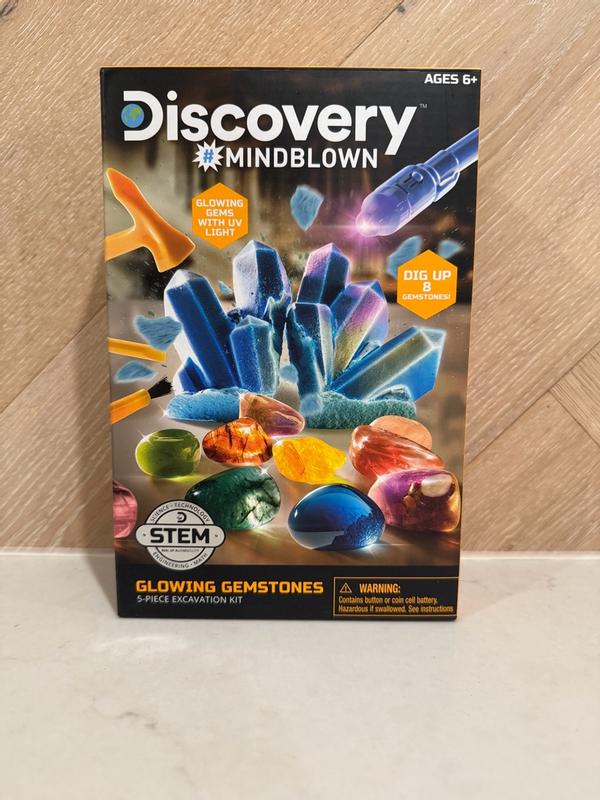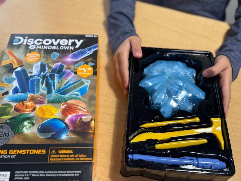The Discovery Mindblown Toy Excavation Kit: Glowing Gemstones was a hit with my 5 and 8 year old on a snow day! They had a blast spending 45 minutes chiseling away at the dig brick, eager to uncover the hidden gems. While the included tools weren’t quite strong enough to break apart the brick, my kids who have been using real kid sized tools since they were 3, grabbed a real hammer and chisel to get the job done. Once they unearthed all eight gemstones, they washed them off and excitedly took them to a dark room to see how they reacted under the UV pen light. The instruction sheet also provided interesting facts about each stone, which made it both a fun and educational experience. Overall, this kit was an engaging hands on activity, perfect for keeping little explorers entertained indoors. Just be prepared with sturdier tools if your kids want an easier time excavating!