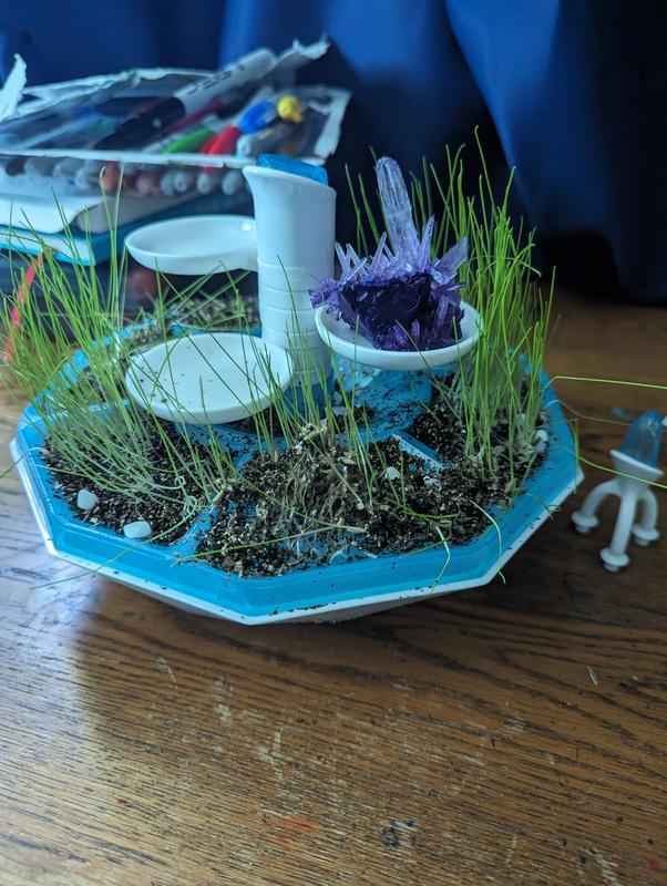 Because my kid is about 2 years old, I do most of things for her. She love to put seeds on the soil and watching grasses grow up every day. We are still waiting for the crystals, but it’s already fun!! Recommended for 3+ kids