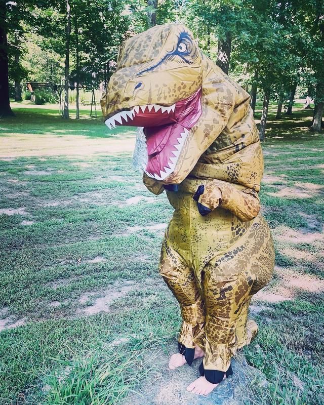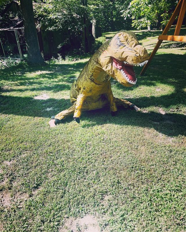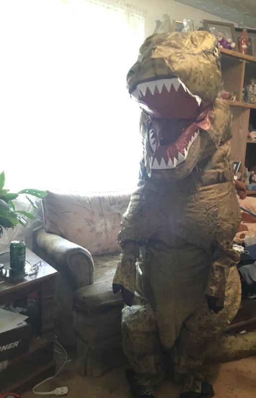 I can't wait to wear the T-Rex inflatable Halloween costume! It's easy to to get into and move around and installing the air machine was super easy. You do need help zipping the back but other than that the custome is awesome.