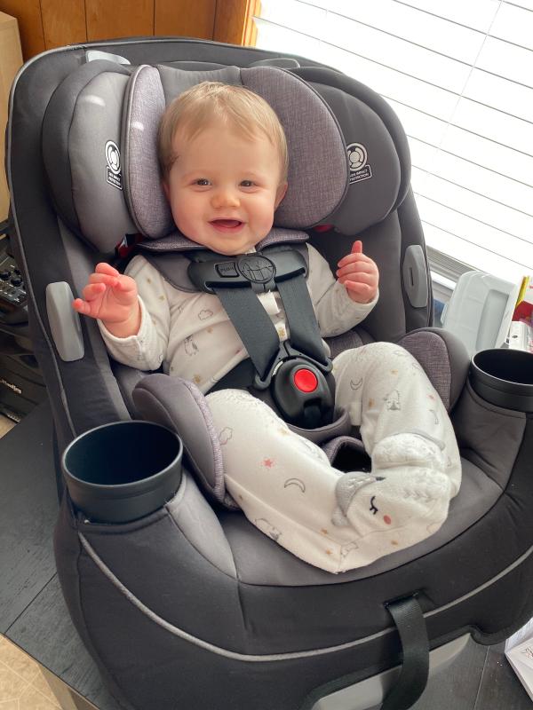 Very happy with my purchase! I bought this for my 7 month old granddaughter because her shoulders were becoming squished in her infant seat and it's absolutely perfect.