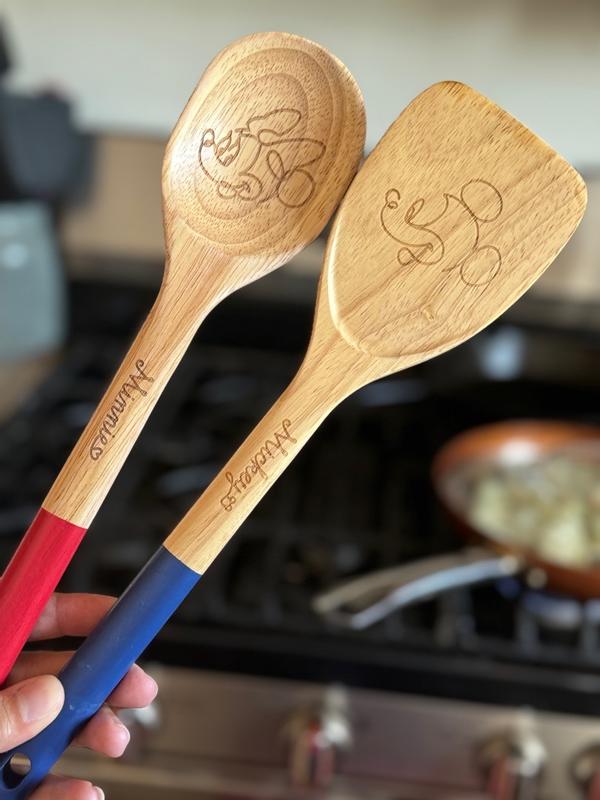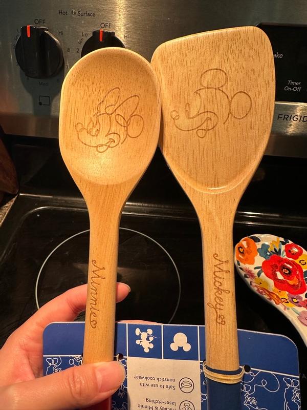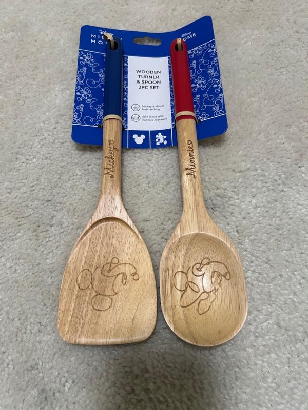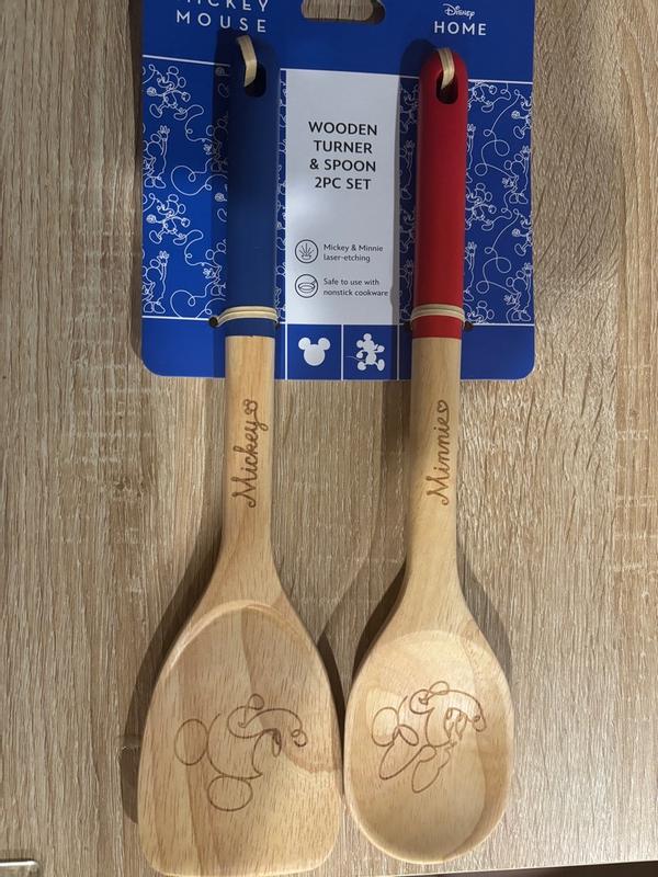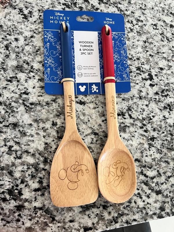 I was super excited to get this in the mail and it’s the Mickey Mouse name and design that’s engraved in the wood !! Everything about the strong red and blue grips just makes me want to whip up some delicious breakfast 🥞🍳